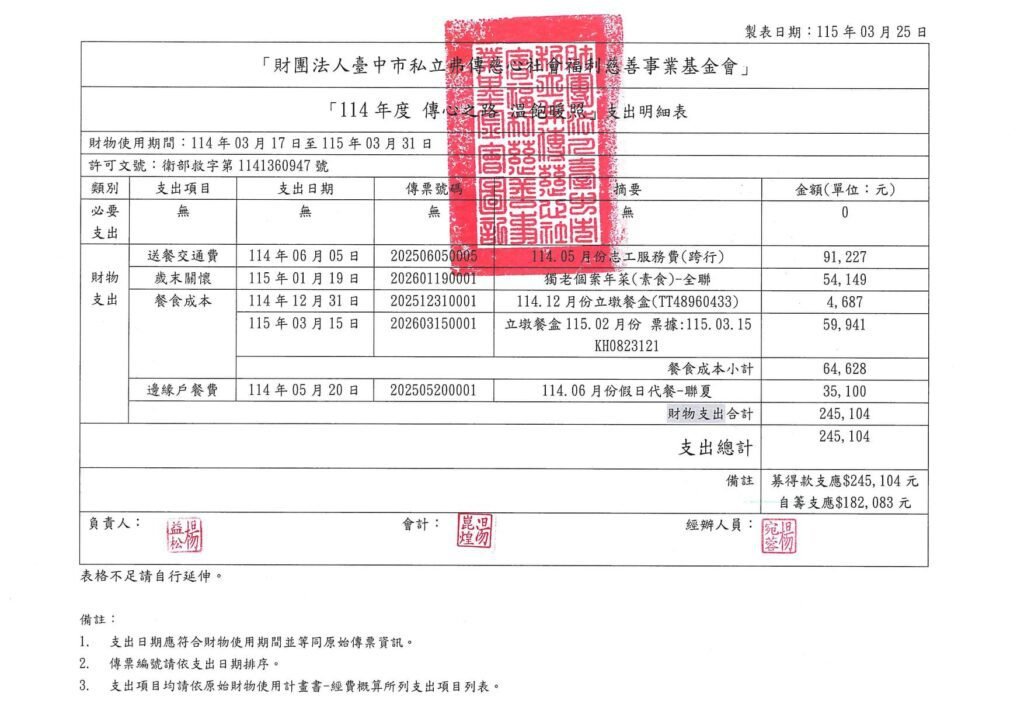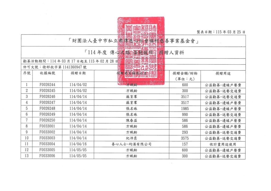 114年度「傳心之路,溫飽暖照」-衛部救字第1141360947號