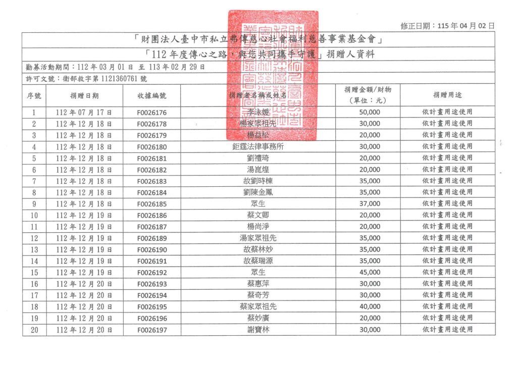 112年度「傳心之路,與您共同攜手守護」-衛部救字第112136761號