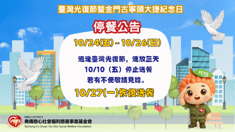 2025年教師節連假停餐公告 弗傳慈心基金會…